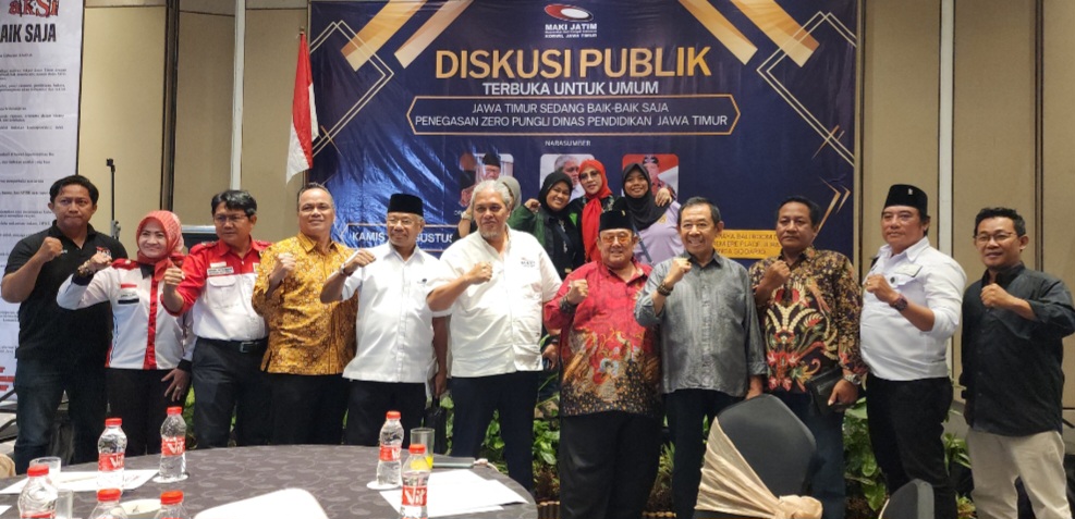 SURABAYA (Radarjatim.id) – Diskusi Publik, digelar Masyarakat Anti-Korupsi Indonesia (MAKI) Provinsi Jawa Timur. Dengan tema, “Jawa Timur sedang Baik-baik Saja“. Kegiatan dibuka langsung oleh Ketua MAKI Jatim, Heru Satriyo. Hadir juga nara sumber berkompeten. Yaitu, DR Basa Alim Tualeka, Kunjung Wahyudi (Ketua FKKS Jawa Timur), Mat Mochtar (tokoh masyarakat Jawa Timur).