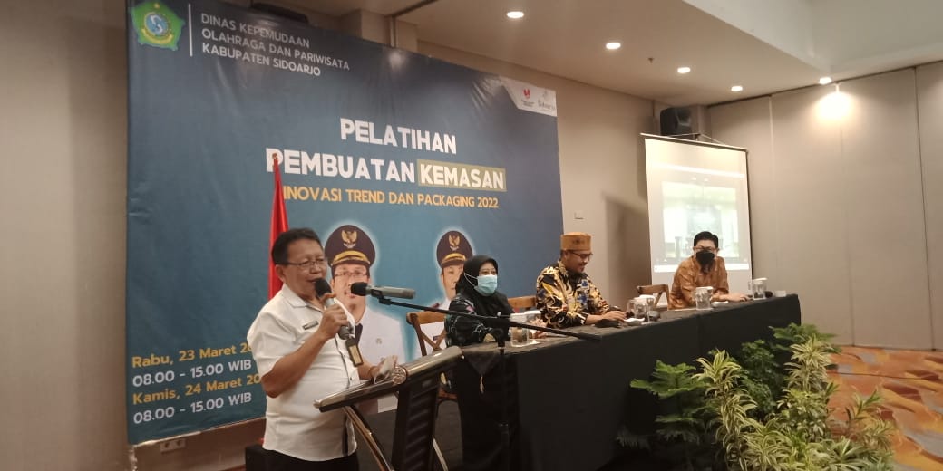 Sekitar 100 para pelaku UMKM (Usaha Mikro Kecil dan Menengah) yang terkait dengan pariwisata telah mengikuti pelatihan yang mengambil tema ‘Pelatihan Pembuatan Kemasan sebagai Inovasi Trend dan Packaging 2022’, pada 23 dan 24 Maret 2022 di Hotel Neo Waru Gedangan Sidoarjo.