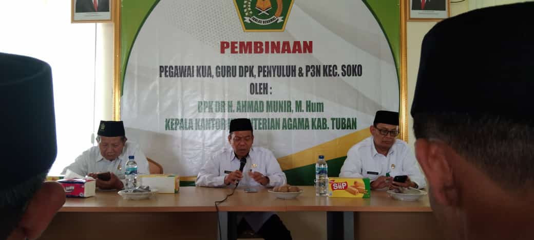 Untuk mencapai predikat KUA Revitalisasi itu, Kantor Kementerian Agama (Kemenag) Tuban melakukan pembinaan terhadap kedua KUA tersebut, Selasa (12/7/2022), bertempat di KUA Kecamatan Soko. Pembinaan dilakukan langsung oleh Kakan Kemenag Tuban, Munir dan Kasi Bimas Mashari.