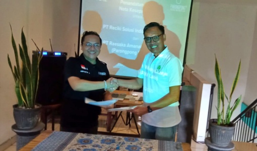 Penandatangan MoU dua perusahaan, yaitu PT Reciki Solusi Indonesia dari Kabupaten Sidoarjo dengan PT Raesaka Amanah Widyakarya (Parongpong RAW Lab) dari Kabupaten Bandung Barat dilakukan di salah satu café di Sidoarjo, Rabu (22/01/2025).
