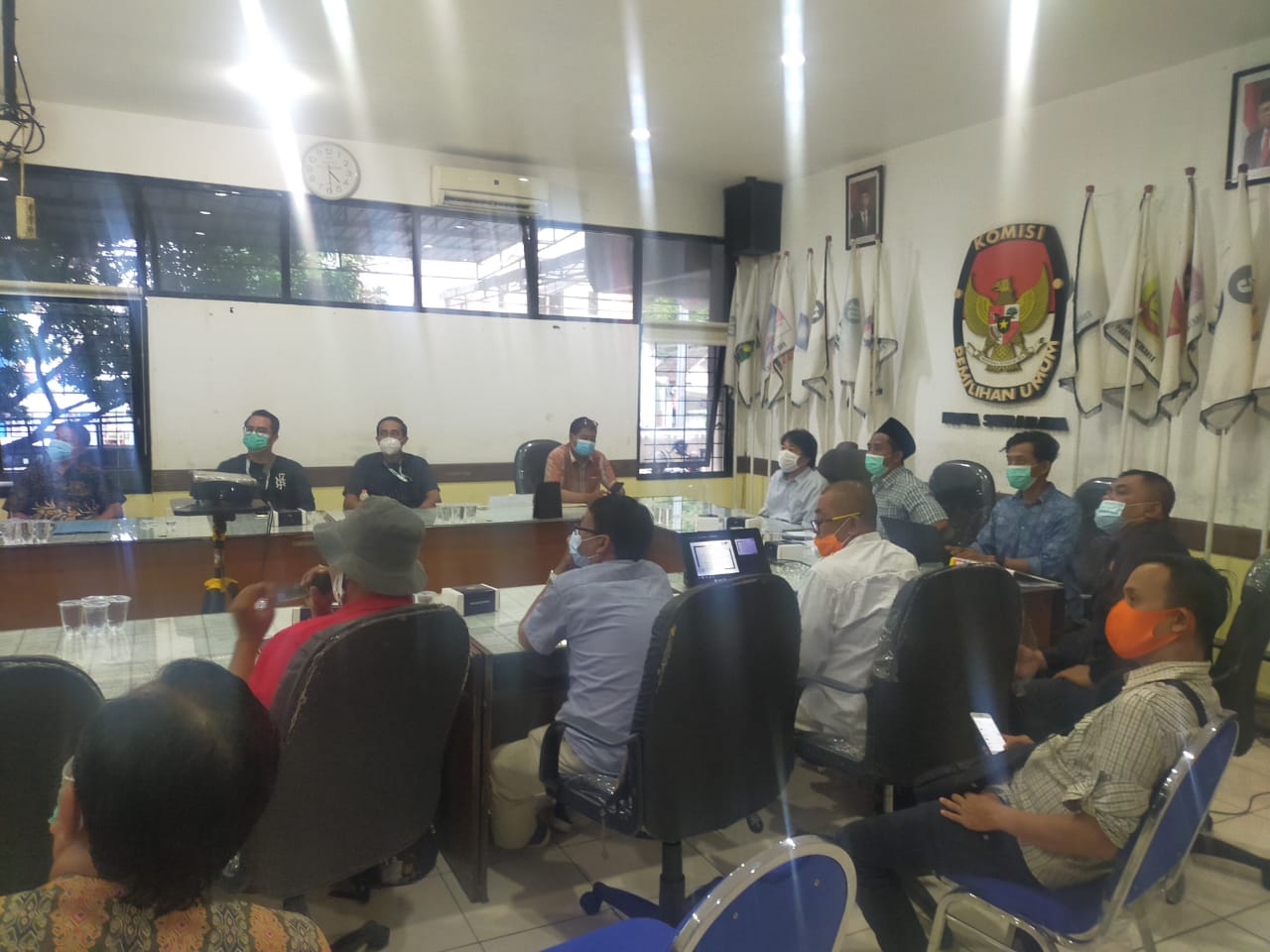 KPU Kota Surabaya bersama Bawaslu dan 2 Tim Sukses paslon siang tadi melakukan sosialisasi terkait perubahan PKPU Nomor 11 tahun 2020 tentang apk atau alat peraga kampanye. Sesuai perubahan PKPU tersebut ada beberapa syarat yang harus ditaati oleh kedua paslon salah satunya pemasangan foto presiden maupun wakil presiden.