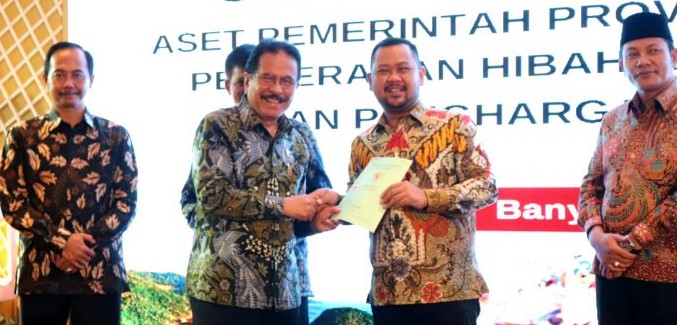 Selanjutnya, penyerahan sertifikat tanah milik aset Pemda sebanyak 555 bidang diserahkan secara simbolis oleh Menteri Agraria dan Tata Ruang/Kepala Badan Pertanahan Nasional (ATR/BPN) Sofyan A. Djalil kepada Bupati Yani.