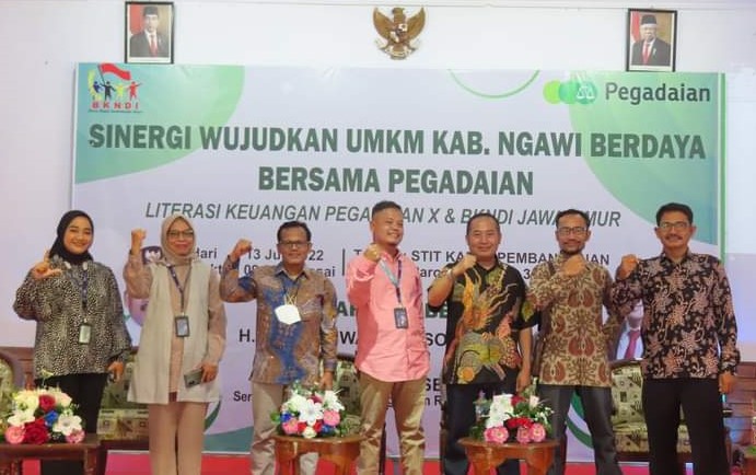 SURABAYA (RadarJatim.id) — Mendukung program pemerintah dalam meningkatkan kesejahteraan pelaku UMKM pascapandemi Covid -19, Pegadaian Cabang Surabaya bersama BKNDI, Rabu (13/7/2022) menggelar sosialisasi dalam rangka mewujudkan UMKM di Kabupaten Ngawi berdaya.