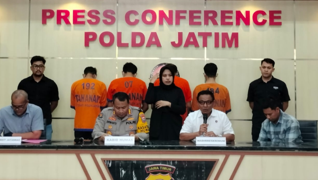 Atas peristiwa itu korban melapor ke Polda Jatim hingga dilakukan penyelidikan hingga penangkapan kepada empat tersangka.