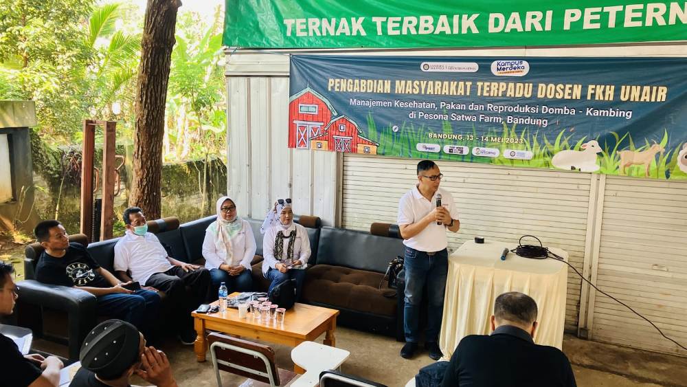 Wakil Dekan 2 FKH Unair Prof. Dr. Iwan Sahrial Hamid, drh., M.Kes., selain sebagai pembicara, sekaligus mewakili pimpinan Fakultas Kedokteran Hewan Univetsitas Airlangga ikut mendampingi tim pengmas selama berada di Cipatat. Targetnya bisa membantu menyelesaikan masalah yang dihadapi para peternak kambing dan domba di Desa Cipatat, Kecamatan Cipatat, Bandung.