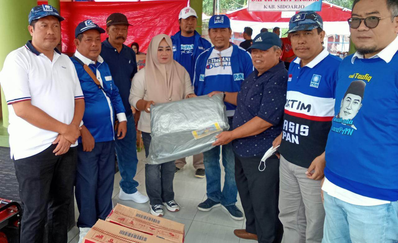 Bantuan berupa terpal sebanyak 15 buah dan 70 dus mie instan. Bantuan ini murni dari uang pribadi para anggota Fraksi PAN. Sedangkan dalam penyerahan bantuan, dihadiri seluruh anggota fraksi masing-masing Dr H Emir Firdaus, ST, MM, yang juga wakil ketua DPRD Sidoarjo dan ketua DPD PAN Sidoarjo, Bangun Winarso yang juga sekretaris DPD PAN Sidoarjo, H Haris yang juga bendahara DPD PAN Sidoarjo serta H Musauwimin. Hadir pula anggota Fraksi PAN DPRD Jatim H Khulaim Junaidi dari daerah pemilihan Sidoarjo.