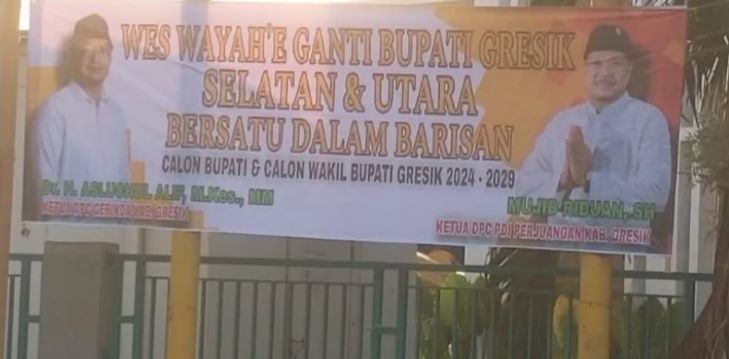 Seperti diketahui, beberapa kader PDIP dipastikan maju dalam kontestasi Pilkada Gresik yang diagendakan berlangsung pada November 2024. Di antaranya yang paling kuat adalah mengusung kembali calon petahana (incumbent) Bupati Fandi Akhmad Yani. Dengan memasangkan Ketua Gerindra Asluchul Alif sebagai bakal calon bupati dan Ketua PDIP Mujid Riduan sebagai bakal calon wakil bupati — sebagaimana terpampang dalam spanduk—oknum pelakunya ingin menancapkan kesan dan opini ke publik, bahwa di antata kader PDIP telah terbelah atau tidak kompak.