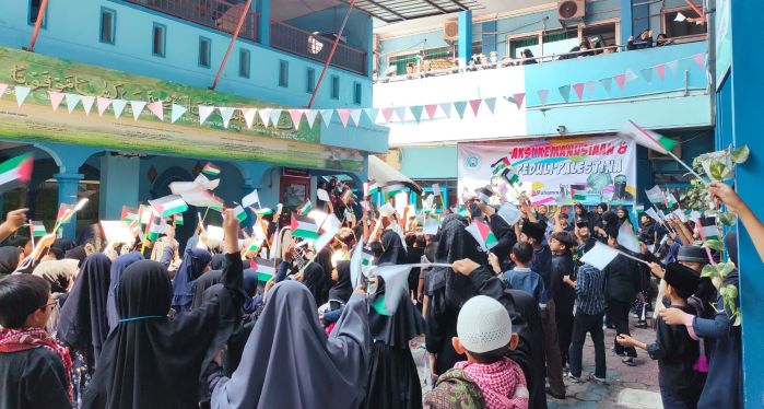 “Hidup Palestin! Hidup Gaza!,” teriak Ustadz Syaifuddin berulang-ulang di tengah-tengah kerumunan siswa yang dijawab dengan kalimat yang sama oleh mereka.
