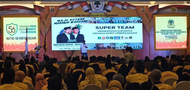 SURABAYA (RadarJatim.id) – Partai Golkar sebagai salah satu pengusung Paslon Nomor Urut 2 Machfud Arifin-Mujiaman Sukirno siap mendongkrak kreatifitas dalam kampanye di tengah keterbatasan selama pandemi Covid19 selama tahun politik.