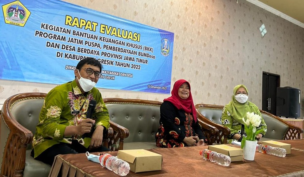 “Banyak hal bisa dilakukan untuk mengembangkan potensi yang ada di desa. Kebetulan saat ini, Pemerintah Provinsi Jawa Timur lagi mengembangkan program yang pas dengan upaya pemberdayaan dan pengembangan di desa, yaitu Desa Berdaya, Pemberdayaan BUMDes, dan Jatim Puspa yang fokus pada pengembangan potensi ibu-ibu di desa,” ujar Titik Sofiati, Penggerak Swadaya Masyarakat, Dinas PMD Gresik, seusai Rapat Evaluasi Kegiatan Bantuan Keuangan Khusus (BKK) Program Jatim Puspa, Pemberdayaan BUMDesa, dan Desa Berdaya Provinsi Jawa Timur di Kabupaten Gresik 2022, Kamis (15/12/2022).