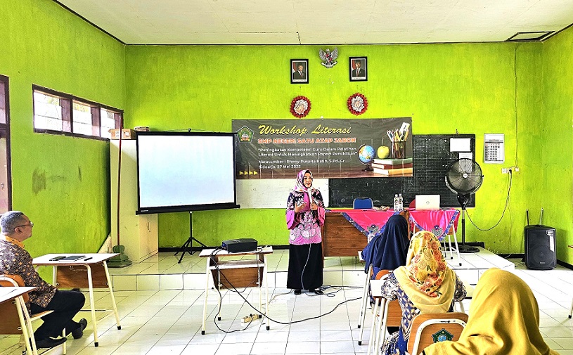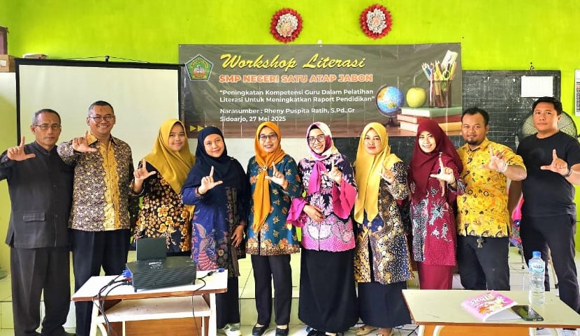 Kepala SMP Negeri Satu Atap Jabon, Vokal Sulistyowati, S.Pd SD menuturkan kalau kegiatan yang dikemas dalam ‘Workshop Literasi’ bertemakan Peningkatan Kompetensi Guru dan Pelatihan Literasi untuk Meningkatkan Raport Pendidikan.