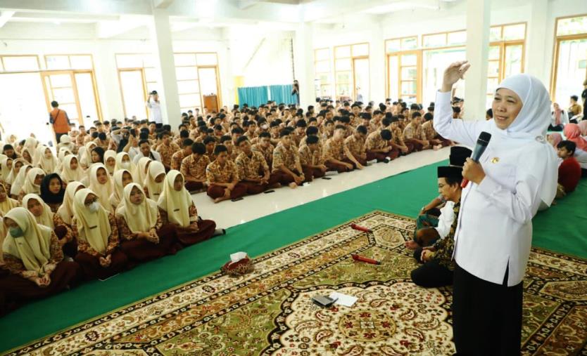 Usai doa Khofifah memberikan semangat dan motivasi kepada para siswa, agar terus semangat belajar, jangan larut dalam kesedihan karena akan memasuki jenjang ke perguran tinggi.