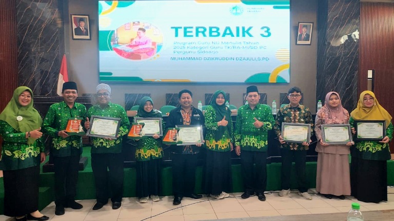 Penghargaan tersebut diserahkan secara langsung oleh Ketua PC Pergunu Kabupaten Sidoarjo, Ahmad Anwar, S.Pd., M.M., M.Pd., pada acara puncak Rapat Kerja (Raker) ke-II PC Pergunu Sidoarjo yang digelar di Hall PCNU Sidoarjo, Selasa (16/12/2025) lalu.