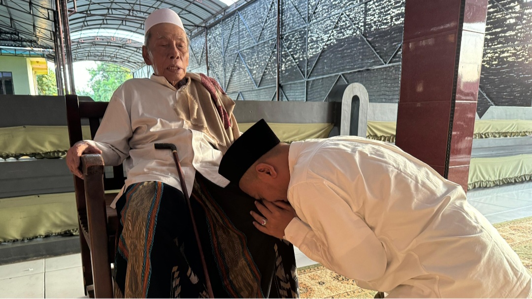 Gus Makki bersimpuh kepada sang guru KH Nurul Huda Djazuli, Pengasuh Pondok Pesantren Al Falah Ploso Kediri
