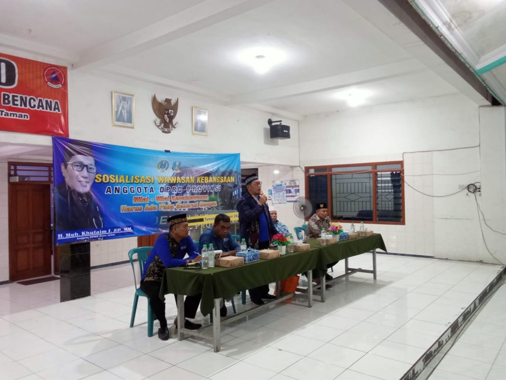 SIDOARJO (RadarJatim.id) — Anggota DPRD Provinsi Jawa Timur H Khulaim Junaidi,SP,MM memberikan wawasan kebangsaan kepada sekitar tiga ratus warga Desa Kedungturi, Kecamatan Taman. Kegiatan dilaksanakan di Balai Desa Kedungturi, pada Sabtu (12/11/2022) malam.