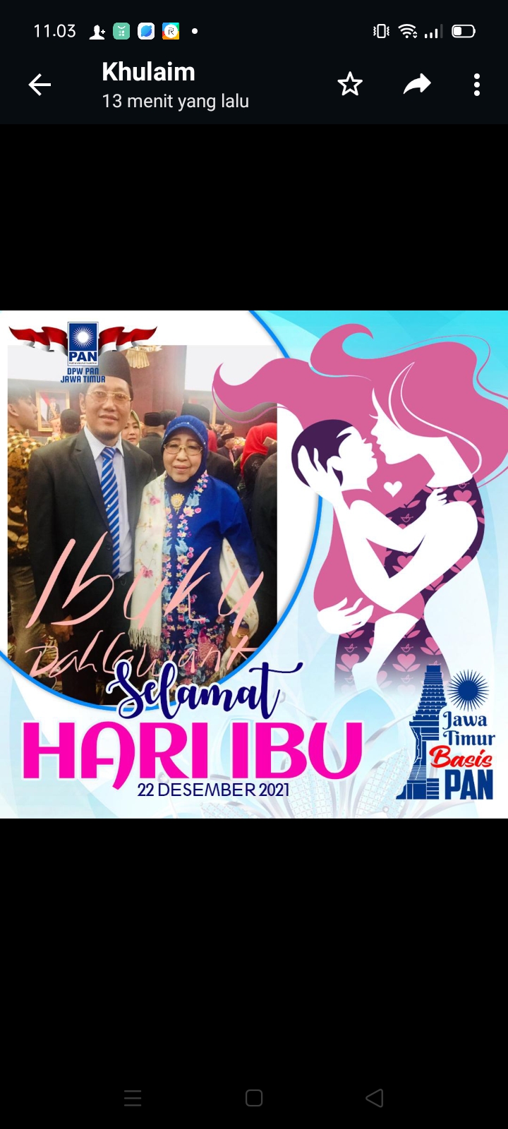 H Khulaim Junaidi, anggota DPRD Provinsi Jawa Timur dari Fraksi Partai Amanat Nasional Jawa Timur mengucapkan Selamat Hari Ibu, 22 Desember 2021.