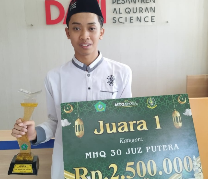SIDOARJO (RadarJatim.id) — Setelah sukses menjadi Juara I MHQ (Musabaqah Hifdzil Qur’an) tingkat Kabupaten Sidoarjo, Muhammad Faqih Al Zuhdi santri kelas XII Azhari A dari MA Darul Fikri Sukodono Sidoarjo ini akan menjadi wakil Sidoarjo maju ketingkat Provinsi Jawa Timur.
