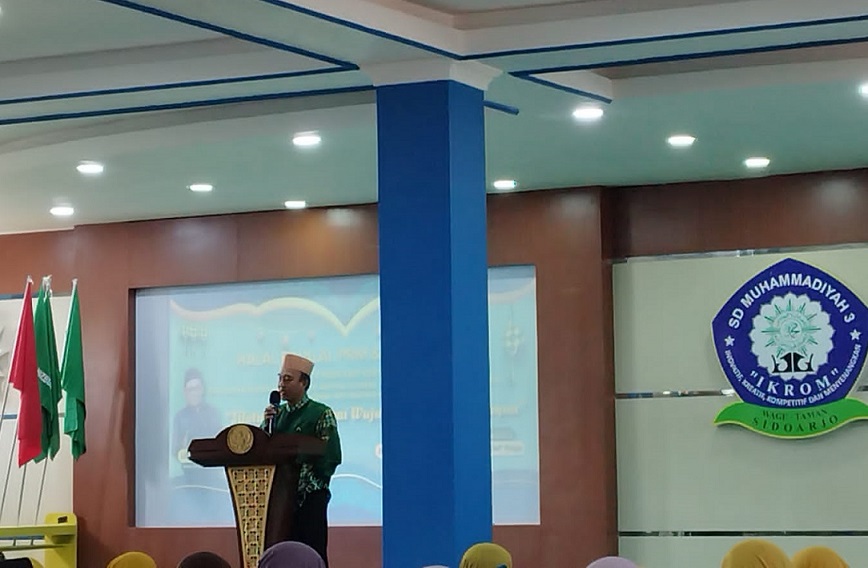 Ketua PRM Wage saat memberikan sambutan halal bihalal di SD Muhammadiyah 3 Ikrom Wage