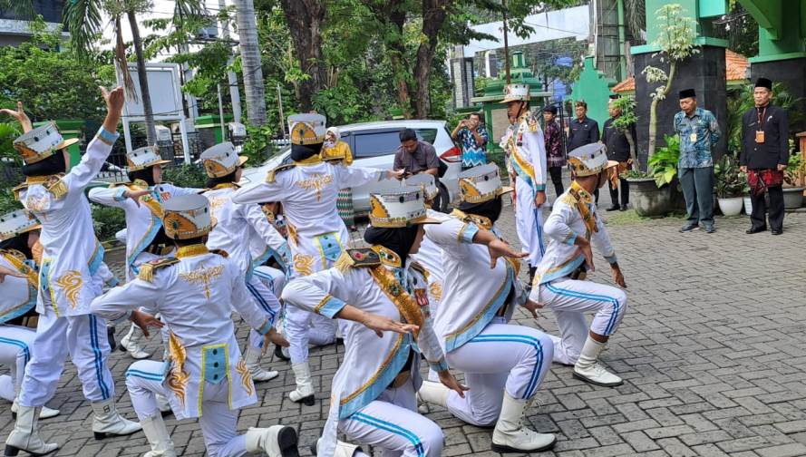 Kepala Dikbud Sidoarjo dan Kepala SMPN 1 Sidoarjo menyaksikan atraksi Paskibra di halaman Dikbud Sidoarjo
