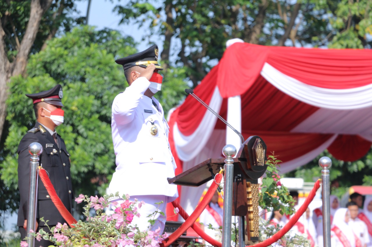 Bupati Yani saat memimpin upacara Hari Kemerdekaan ke-77 RI di halaman kantor bupati Gresik. (Foto: ist)