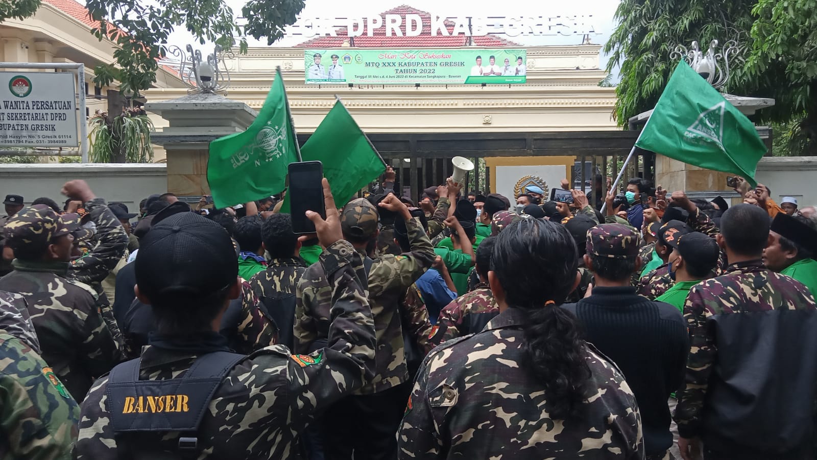 Dalam aksi yang bermula di depan pintu masuk gedung dewan dan akhirnya masuk ke gedung dewan itu, mereka dipimpin langsung oleh Ketua Pimpinan Cabang GP Ansor Abdul Rokhim itu. Sebanyak 10 perwakilan akhirnya dipersilakan memasukan ruang untuk menyampaikan aspirasi mereka ke pimpinan DPRD. Sementara lainnya menunggu di teras gedung dewan.