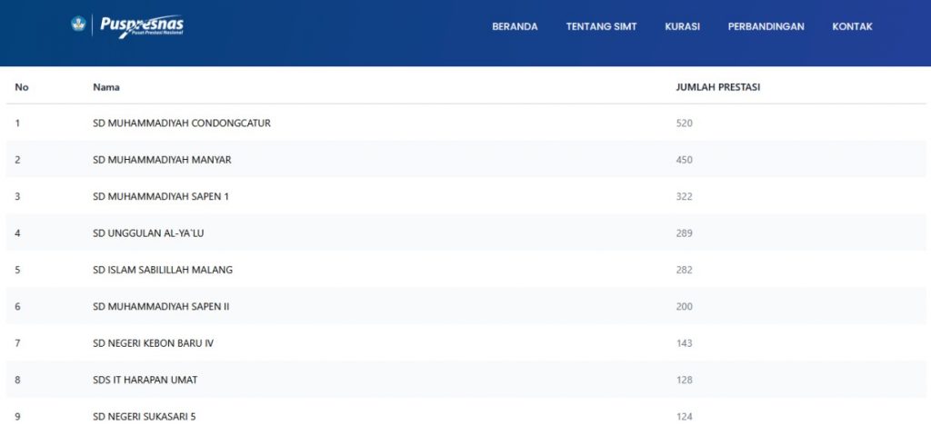 SIMT Puspresnas merupakan pangkalan data talenta nasional untuk mendukung pencatatan dan pemetaan talenta nasional yang terintegrasi dan berkelanjutan. Berdasarkan data yang diumumkan SIMT Puspresnas di laman https://simt.kemendikdasmen.go.id/prestasi-sekolah diketahui, bahwa SDMM menempati peringkat ke-2 nasional dari 13.920 SD/MI yang sudah dikurasi prestasinya oleh Puspresnas dengan jumlah prestasi yang diperoleh SDMM sebanyak 450 prestasi.