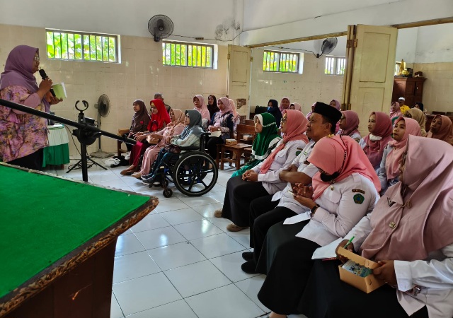 Kasi Pembinaan Kelembagaan dan Pembinaan Dasar Dikbud Sidoarjo Anik Sumarviati sedang memberikan pengarahan