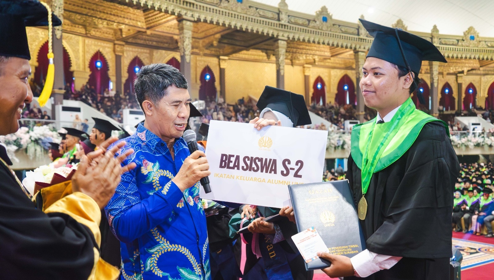 Pada Sabtu, 30 Agustus 2025, bertempat di Graha UNESA Kampus Lidah Wetan, bersamaan dengan momentum wisuda periode ke-115, IKA Unesa menyerahkan beasiswa S2 bagi mahasiswa berprestasi, yang diwakili Pengurus Pusat IKA Unesa. Untuk periode ini, lulusan Unesa yang mendapatkan beasiswa adalah Hasan Abdul Bar, mahasiswa S-1 Pendidikan Teknik Elektro, Fakultas Teknik Unesa yang memiliki sederet pretasi.