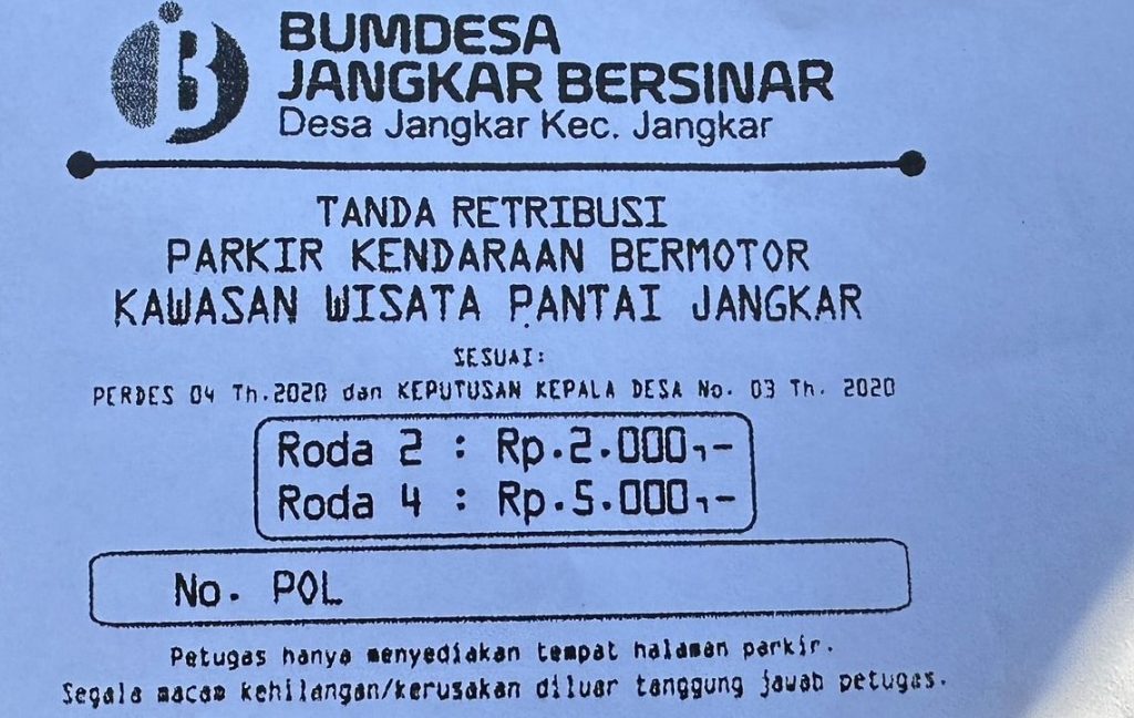 Namun, ramainya arus pengunjung akhirnya menarik perhatian pemerintah desa setempat untuk menerbitkan peraturan Desa (Perdes) No. 04 Tahun 2020 dan Keputusan Kepala Desa Jangkar No. 03 Tahun 2020 yang mengatur seputar retribusi. Hal tersebut lalu dicantumkan dalam tiket masuk yang besarannya Rp 2.000 untuk pengunjung bersepeda motor dan Rp 5.000 untuk mobil pribadi.