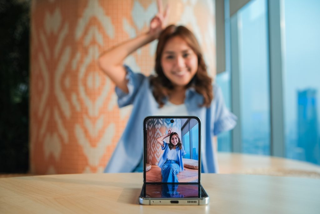 Kemampuan selfie pada Galaxy Z Flip5 juga telah ditingkatkan secara signifikan. Anda bisa langsung mengakses aplikasi kamera dari Flex Window untuk mengambil, melihat, bahkan menghapus foto Anda secara langsung.