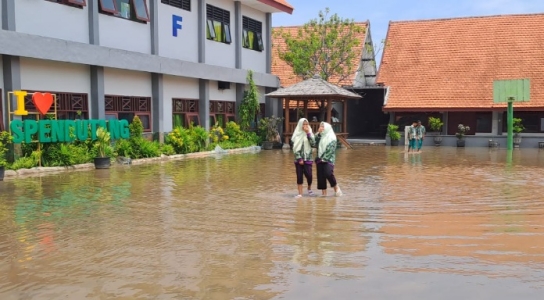 Genangan air yang melanda SMPN 2 Tanggulangin pada saat banjir terjadi pada 19 Februari 2024 lalu.