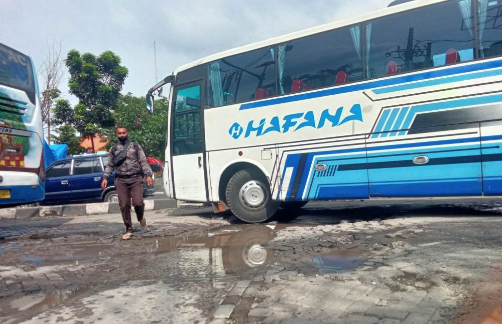 Saat meninjau lokasi, memang kedapatan jalan akses keluar bus AKAP dan AKDP kondisinya rusak dan berlubang. Kondisi ini diperparah saat terjadi hujan lantaran kondisi lubang jalan tak terlihat.