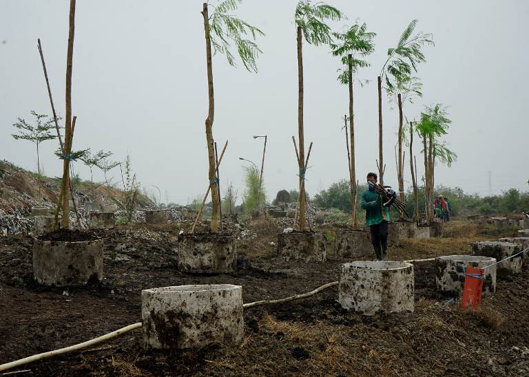 “Jadi, nanti pada saat acara Piala Dunia U-20, tumpukan sampah itu sudah tertutup oleh pohon-pohon ini, dan di sekitar TPA Benowo ini berubah menjadi taman yang ada bunganya warna-warni. Bahkan, nanti di sekitar TPA Benowo ini akan dibangun jogging track, sehingga warga juga bisa sepedaan di sini,” kata Anna.