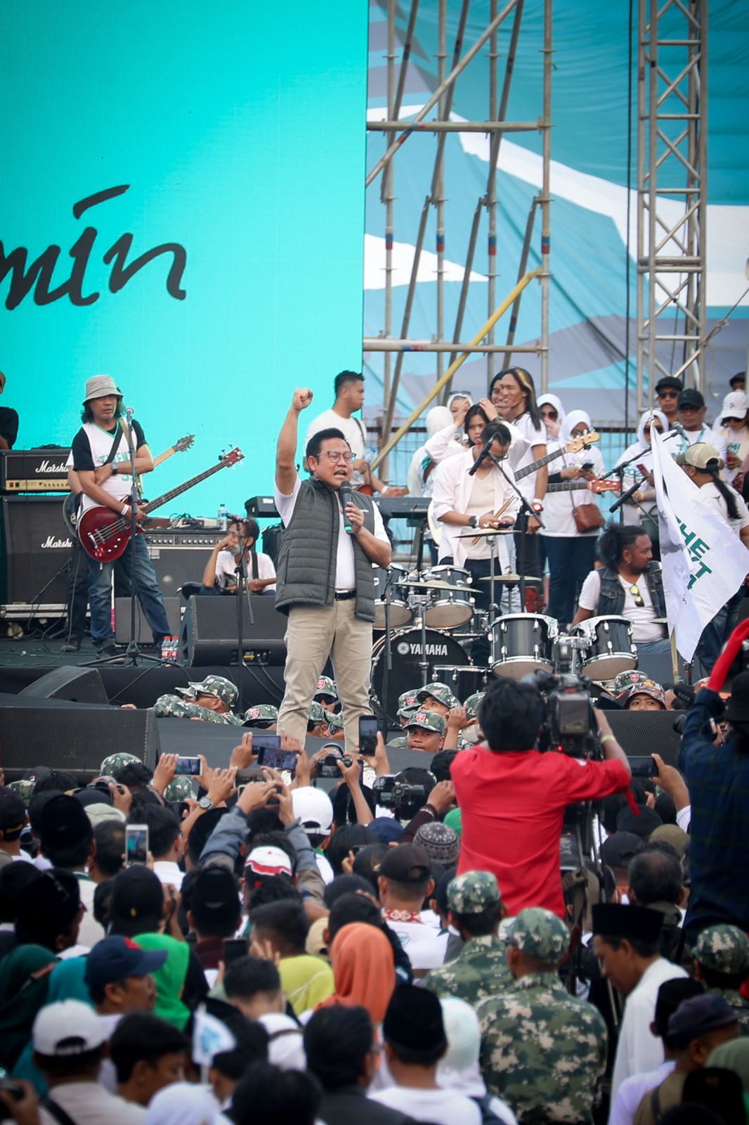 Ratusan ribu relawan Gus Muhaimin itu tampak solid penuh semangat berkobar saat group band legendaris Jamrud melakukan open mic.