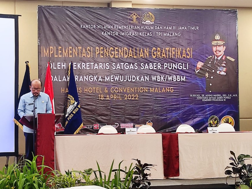 Hal itu disampaikan Hendro kepada seluruh Kepala Satker Keimigrasian se-Jatim dalam kegiatan Sosialisasi Anti Korupsi dengan tema Implementasi Pengendalian Gratifikasi hari ini (18/4/2022).