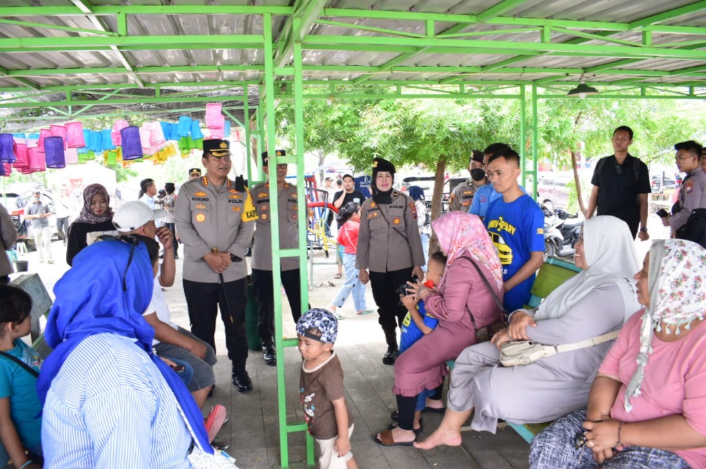 Didampingi Wakapolresta Sidoarjo AKBP Deny Agung Andriana, pejabat utama dan Kapolsek Jabon, Kapolresta Sidoarjo Kombes Pol. Kusumo Wahyu Bintoro mengecek situasi libur tahun baru di wisata Bahari Tlocor.