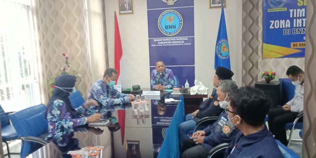 Imam Syafi’i yang didampingi pengurus lainnya serta perwakilan Ketua Kartar Kecamatan, disambut langsung oleh Kepala BNN Sidoarjo AKBP Toni Sugianto bersama stafnya di Ruang Media Center BNN Kabupaten Sidoarjo.