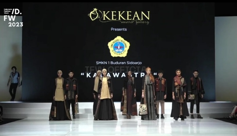 SIDOARJO (Radarjatim.id) — Karya desainer siswa SMK Negeri 1 Buduran Sidoarjo berkembang sangat luar biasa. Khususnya Kompetensi Tata Busana Wirausaha, berhasil kerja bareng dengan Kekean Waztra Gallery tampil bersaing dengan 300 desainer nasional, dan disaksikan pula oleh beberapa desainer luar negeri di ajang (IFW) Inonesia Fashion Week 2023, Plenary Hall Jakarta Convention Center (JCC).