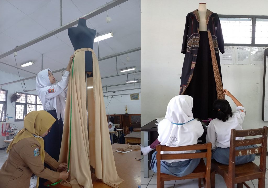 Jadi siswa ini terlibat di semua proses. Mulai dari desain, menjahit, hingga pagelaran. Hebatnya lagi bahannya yang menyiapkan dari pihak Kekean. “Kemudian desainnya dibuat oleh siswa sampai proses jahit termasuk aksesoris yang digunakan juga dibuat siswa sampai kemarin saat pagelaran juga siswa dilibatkan, sehingga mereka bisa melatih hard skills dan soft skills mereka,” kata Agustina.