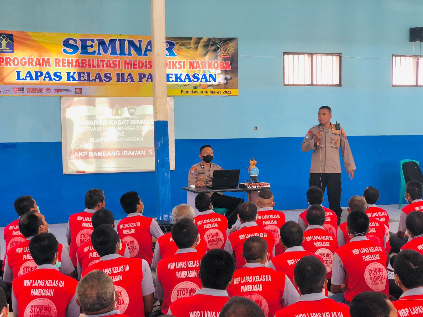 Sebelum seminar dimulai, 170 residen rehabilitasi dengan semangat menampilkan yel–yel, yang dilanjutkan dengan sambutan oleh Kalapas Pamekasan, Seno Utomo.