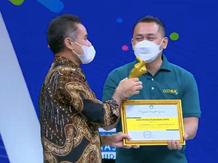 Indra Wahyu Suliswanto, M.Pd. selaku CEO SMK Krian 2 Sidoarjo berhasil menyabet 2 dari 6 kategori yang ada, yakni CEO SMK Kategori Kinerja Unggul dan CEO SMK Kategori Cakap Digital.