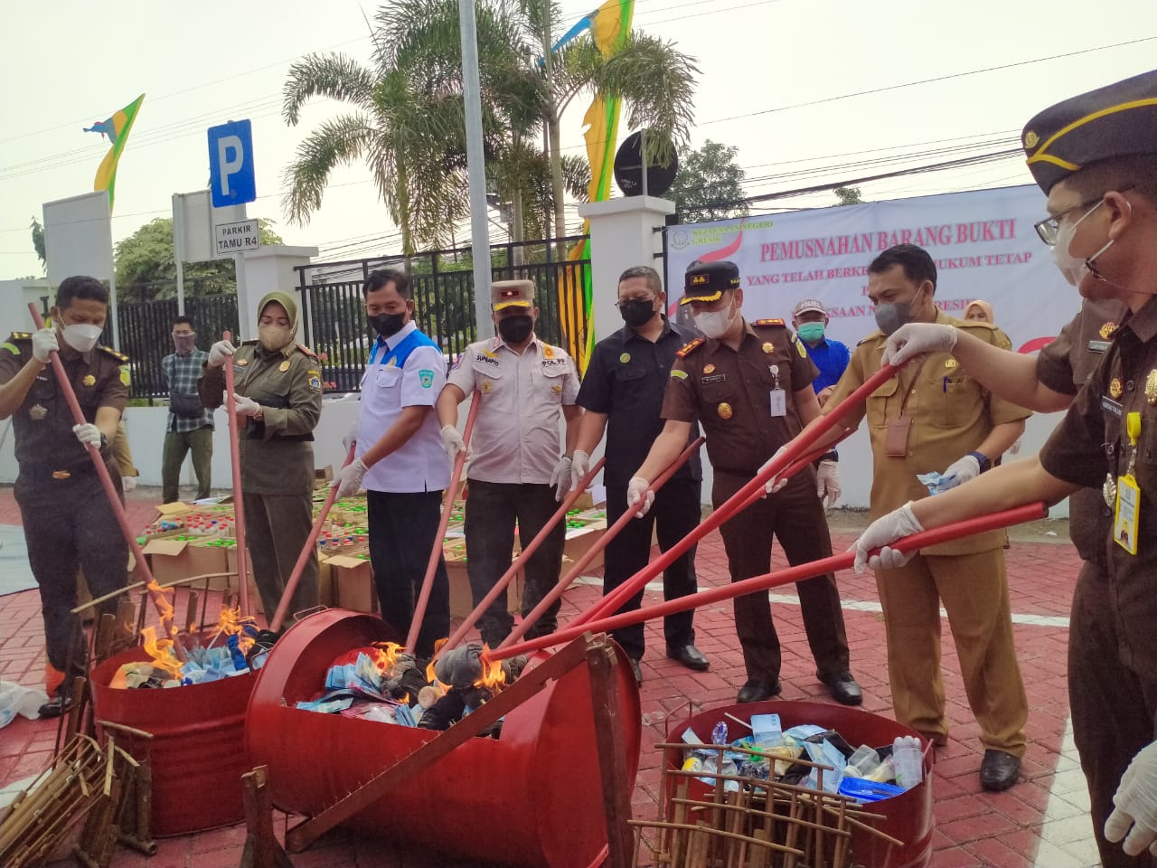 Pemusnahan BB itu dipimpin langsung oleh Kajari Gresik Muhamad Hamdan Saragih bersama perwakilan dari Pengadilan Negeri (PN) Gresik, Satnarkoba Polres Gresik, Dinas Satpol PP Gresik, BNNK Gresik, Kabag Hukum Pemkab Gresik, dan sejumlah undangan lainnya.