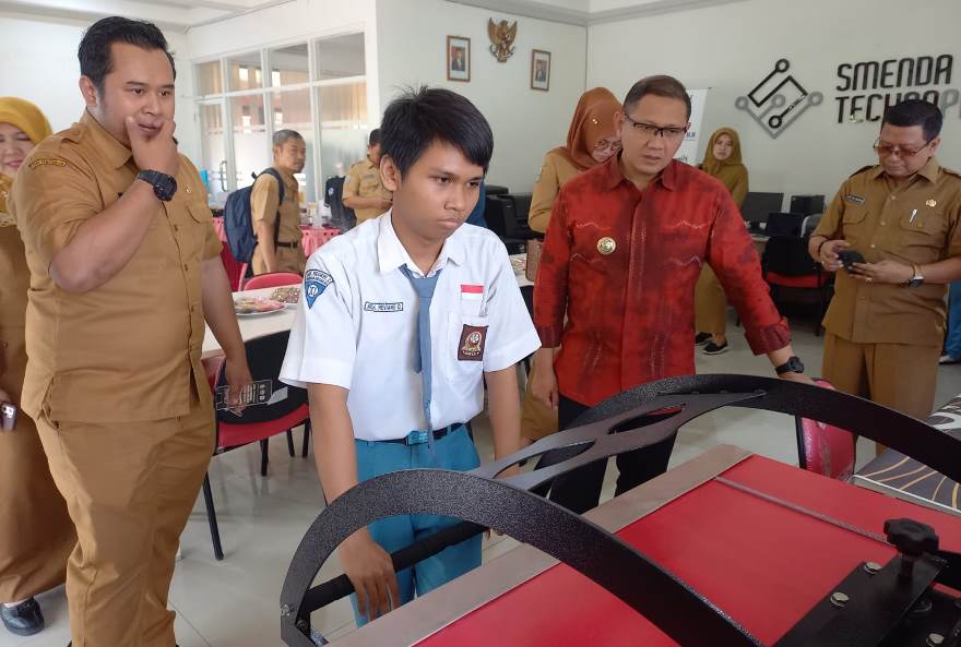 Selama kunjungan, Aries Agung Paewai disambut dan didampingi oleh Kepala Sekolah SMK Negeri 2 Buduran, Sidoarjo, Mariya Ernawati untuk melihat langsung proses produksi yang dilakukan di ruangan Smenda TechnoPark.