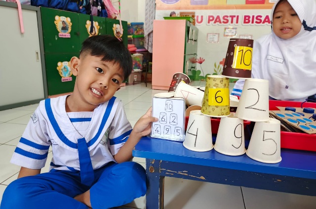Proses pembelajarannya dikemas secara menyenangkan melalui permainan gerak, cerita, serta kegiatan eksplorasi menggunakan benda konkret dan loose parts yang sesuai dengan karakteristik dan tahap perkembangan anak usia dini.