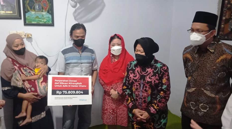 Hal itu membuat Menteri Sosial RI Tri Risma Harini dengan didampingi Bupati Sidoarjo Ahmad Muhdlor Ali turun melihat kondisi Balita berusia 2 tahun tersebut, langsung menemui Haidar yang tengah digendong ibunya Nurul Hidayati.