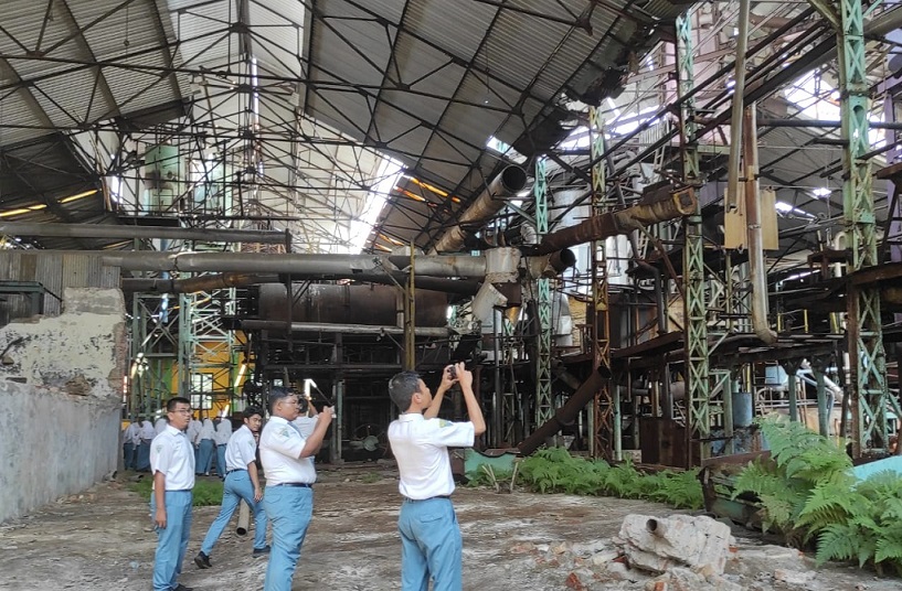 Siswa SMA Negeri 1 Krian sedang melakukan kunjungan di Pabrik Gula Watoe Toelis