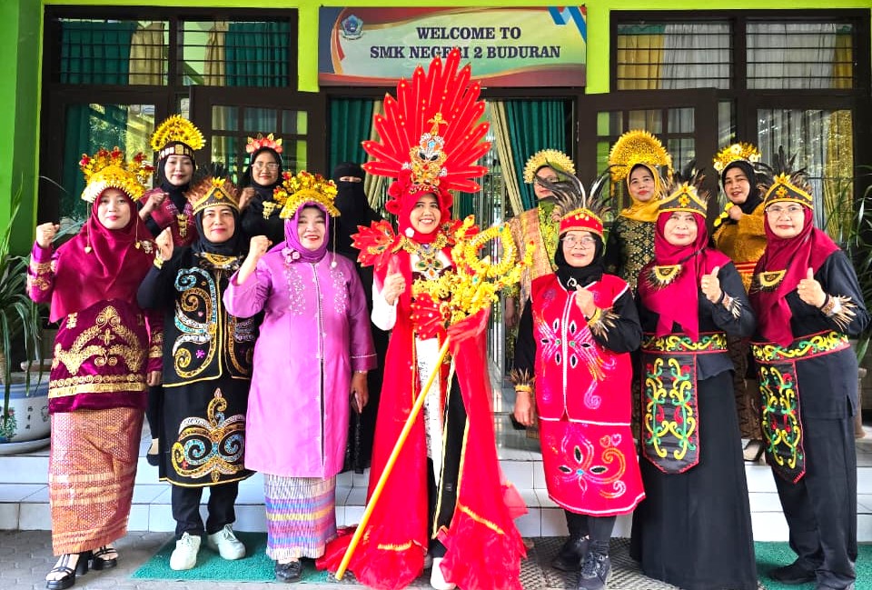 Diawali dengan pengguntingan pita merah putih oleh Kepala SMK Negeri 2 Buduran, Dra. Mariya Ernawati, MM dengan didampingi para Waka Bidang Kurikulum, Waka Kesiswaan, Waka Bidang Humas dan Waka Bidang Sarpras serta jajaran GTK (Guru dan Tenaga Kependidikan) lainnya dengan pakaian beragama budaya nusantara.