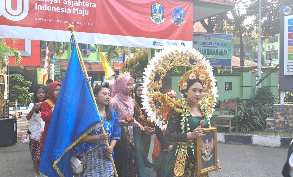 SIDOARJO (RadarJatim.id) — Puncak acara Peringatan HUT Kemerdekaan RI ke 80 di SMK Negeri 2 Buduran Sidoarjo dilaksanakan dengan sangat unik dan menarik. Mengusung tema ‘Unity In Diversity’ bersatu dalam perbedaan, dipimpin langsung oleh Kepala SMK Negeri 2 Buduran, Sidoarjo pada (28/8/2025) pagi.