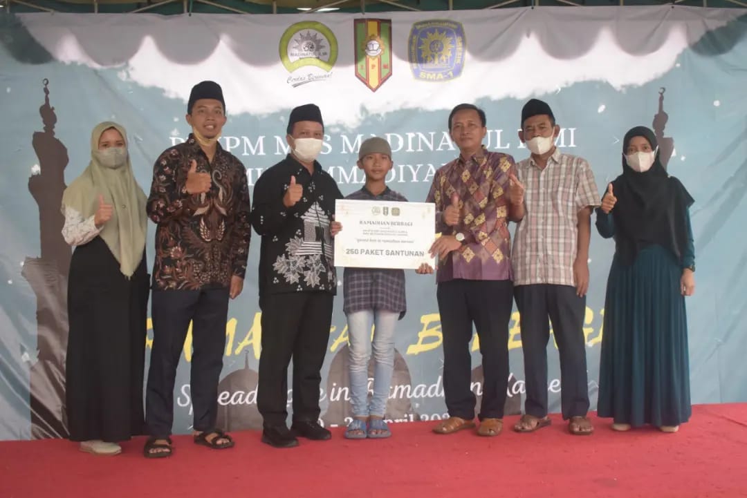 Kegiatan Ramadan Berbagi memberikan santunan berupa uang tunai dan juga makanan sebanyak 250 paket yang diberikan secara simbolik oleh kepala Smamsatu Ainul Muttaqin, SP, MPd dan jajaran pimpinan sekolah. Ainul mengaku sangat bangga dengan santri dan santriwati MBS Madinatul Ilmi yang telah menyelenggarakan acara santunan bagi anak yatim dan duafa di kota Gresik.