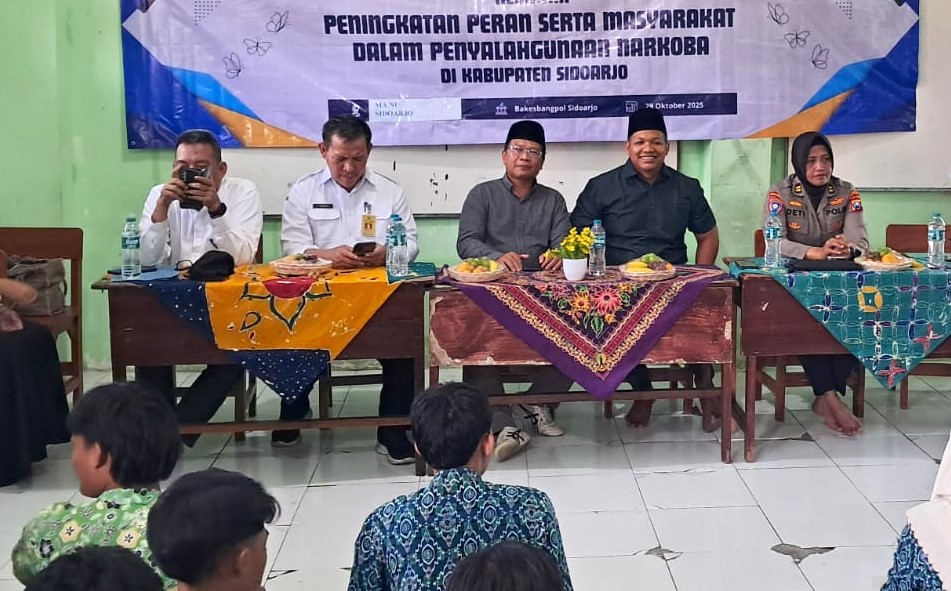 SIDOARJO (RadarJatim.id) – Upaya memberi pemahaman terhadap dampak dan bahaya narkoba bagi remaja produktif. Komisi A DPRD Sidoarjo, BakesbangPol dan Polresta Sidoarjo bersama-sama mengedukasi para siswa MA NU Sidoarjo,pada (28/10/2025) di Aula MA NU Sidoarjo.